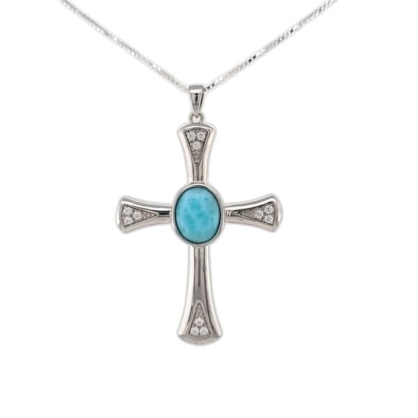 Larimar 8X10mm Cross With White Sapphire Accents (JNX415)